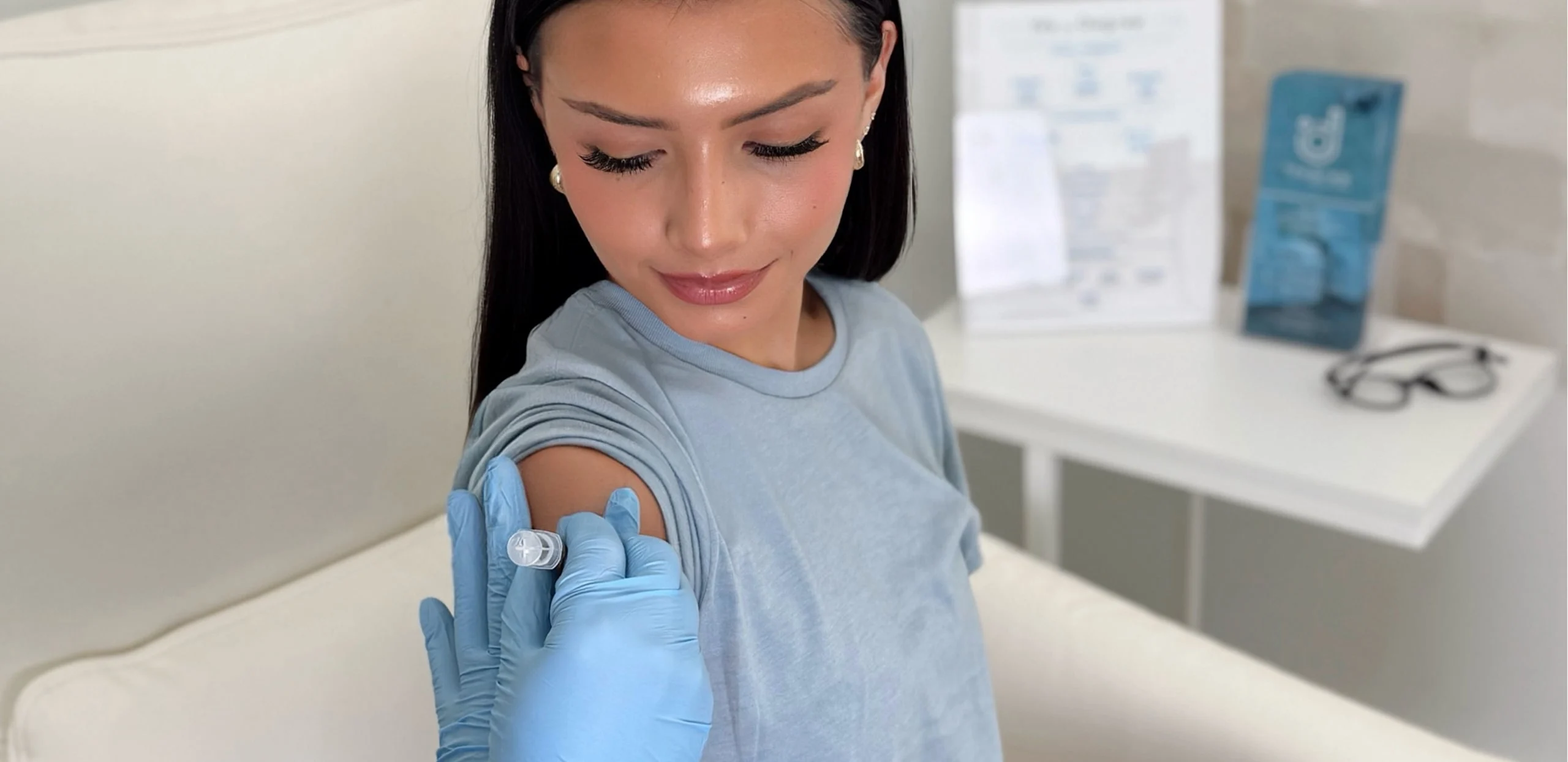 Studios are cleaned continuously with medical-grade disinfectants, and every shot is administered with single-use supplies to maintain a safe, hygienic environment.